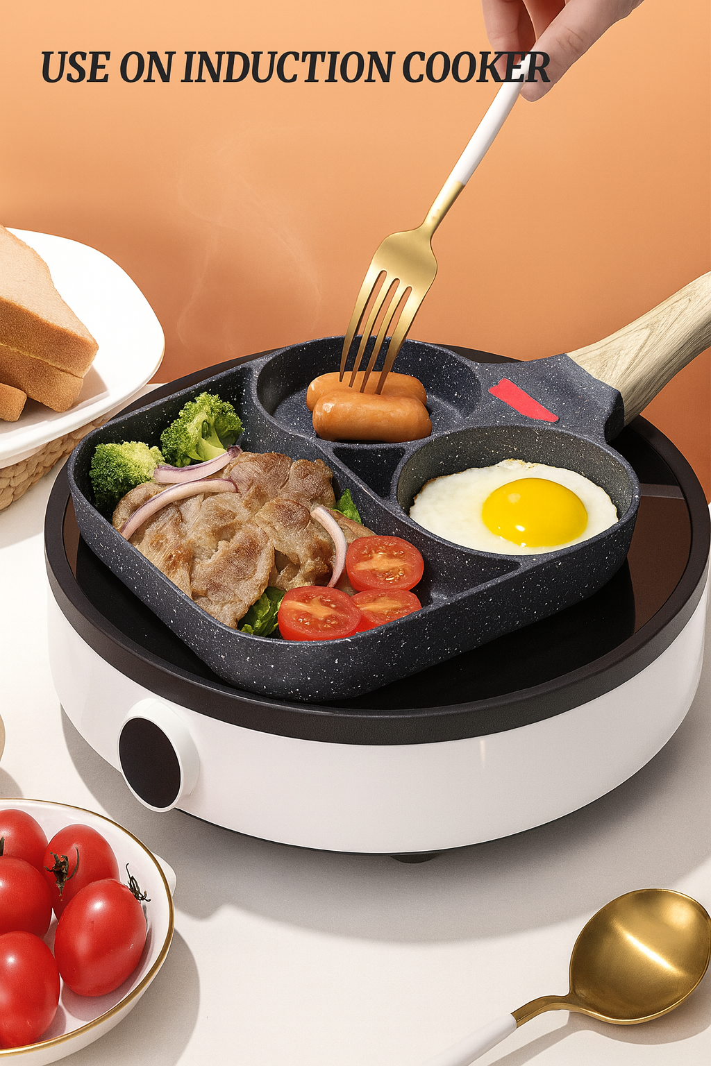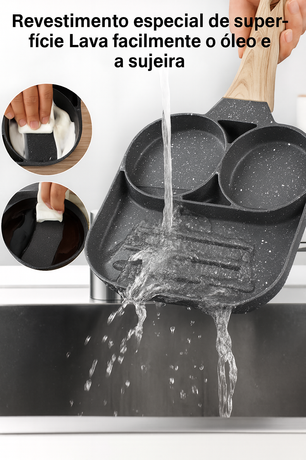 Prepare várias delícias ao mesmo tempo e economize tempo na cozinha com a incrível Frigideira 3 Bocas Antiaderente!