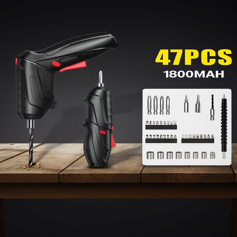 Facilite seu dia a dia com este kit de parafusadeira elétrica multifuncional, ideal para montagem de móveis, reparos domésticos, manutenção e pequenos trabalhos profissionais.