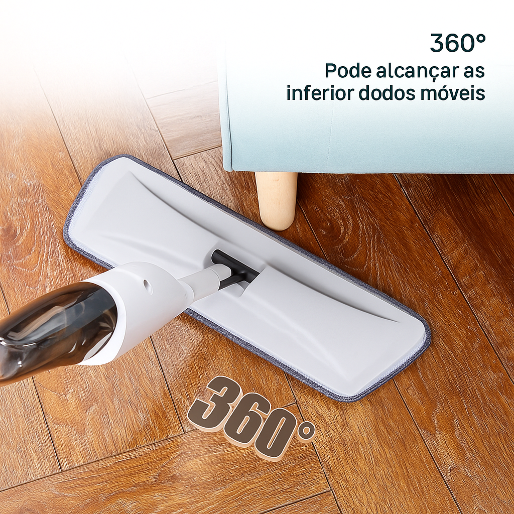 1 Mop Spray 2 em 1 + 1 Refil de microfibra lavável + 1 Reservatório integrado